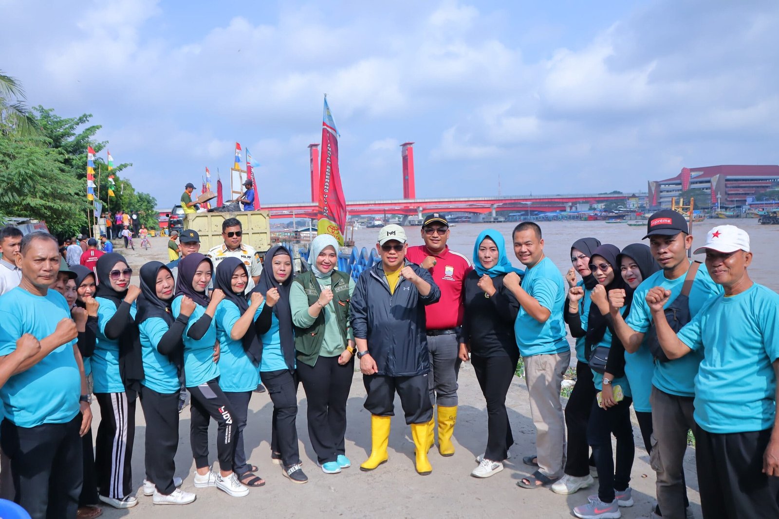 Setibanya di lokasi gotong-royong, Pj Wali Kota A Damenta langsung berkeliling mengecek tepian sungai musi, tepatnya di aliran anak sungai yang persis berdekatan dengan pemukiman warga.