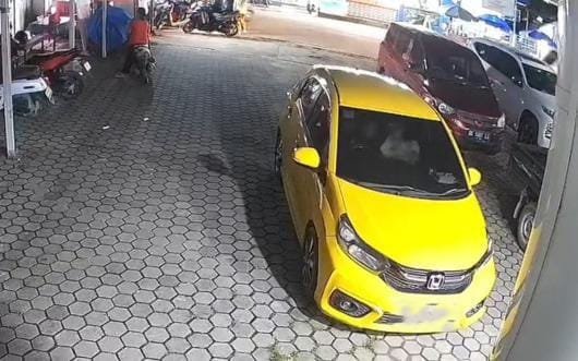 Insiden tersebut terjadi pada Sabtu malam (3/1/2026) sekitar pukul 18.41 WIB. Mobil berwarna kuning bernomor polisi D 1193 AIB itu awalnya berhenti tak jauh dari pos penjagaan, sebelum akhirnya berpindah ke area parkir paling ujung yang terpantau kamera CCTV.