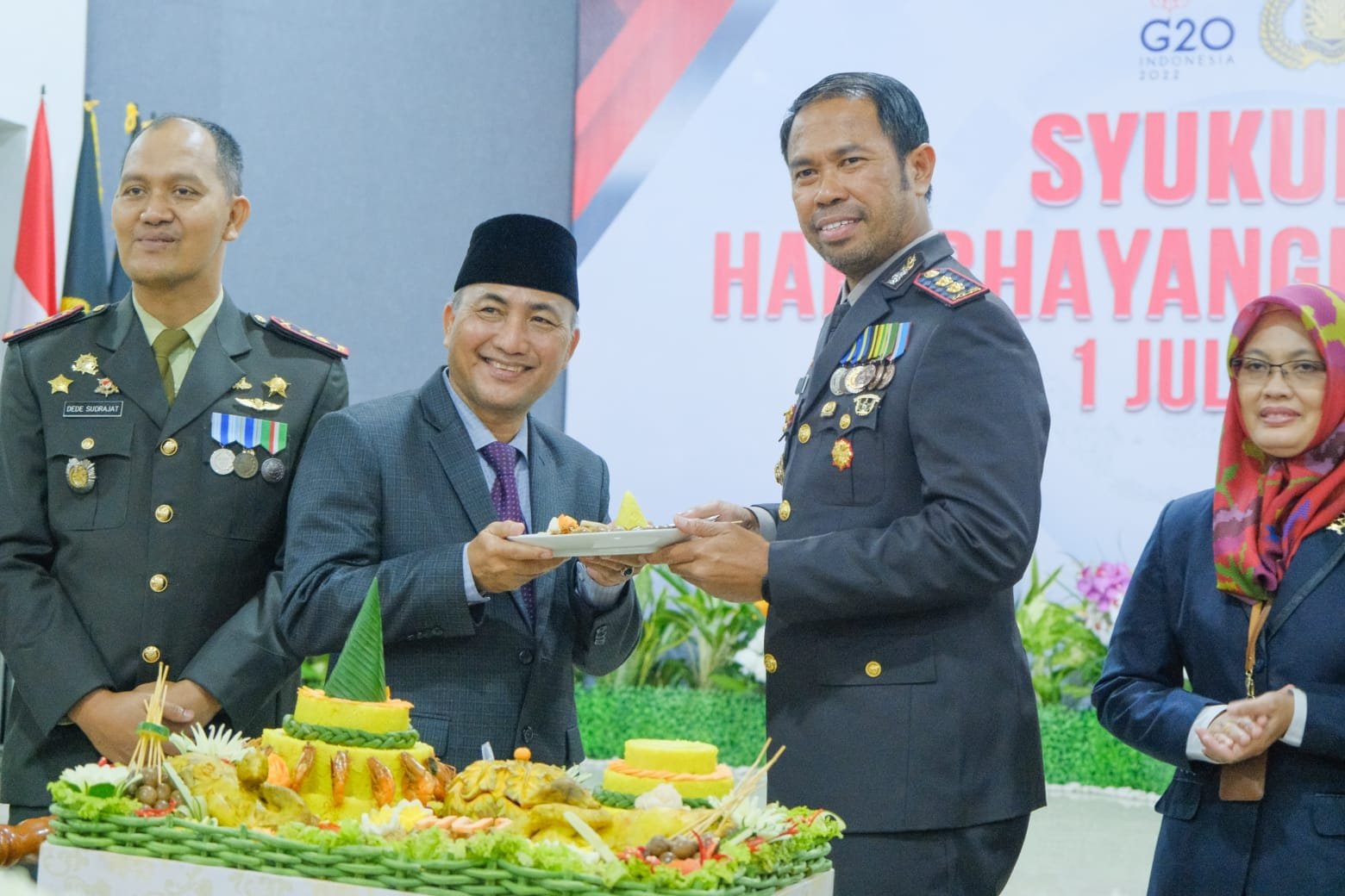 Setelah pelaksanaan upacara, kegiatan kemudian dilanjutkan dengan syukuran Hari Bhayangkara ke-76 yang dilangsungkan di Aula Alex Noerdin Mapolres Muba. Pada kesempatan tersebut digelar pemotongan tumpeng oleh Kapolres Muba dan pemotongan pertama diserahkan kepada Pj Bupati Muba dan jajaran Forkopimda lainnya.