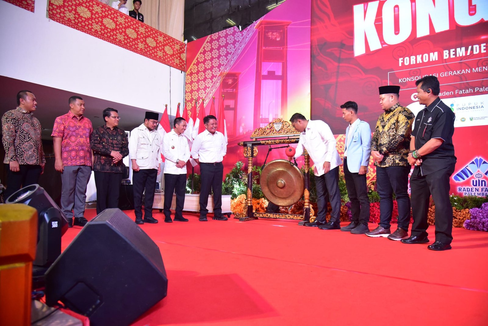 SUMSELDAILY.CO.ID, PALEMBANG – Wali Kota (Wako) Palembang, Ratu Dewa bersama Wakil Wali Kota (Wawako) Palembang, Prima Salam hadiri secara langsung Opening Ceremony Kongres ke-V, Forum Komunikasi Badan Eksekutif Mahasiswa Perguruan Tinggi Agama Islam Se-Indonesia (BEM PTAI) yang digelar di Gedung Academic Center UIN Raden Fatah, Rabu (29/10/2025).