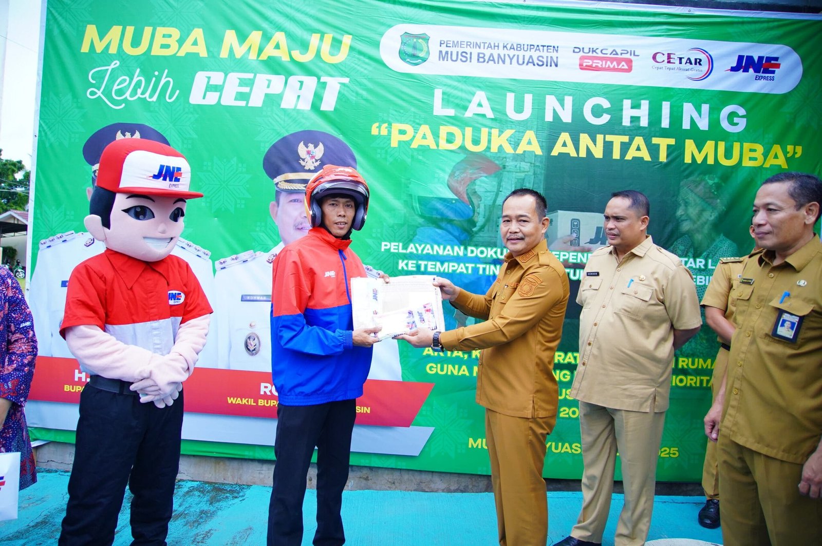 SUMSELDAILY.CO.ID, MUBA – Pelayanan publik di Kabupaten Musi Banyuasin kembali mencatatkan terobosan penting. Kali ini, Dinas Kependudukan dan Pencatatan Sipil (Disdukcapil) Muba meluncurkan inovasi “PADUKA ANTAT MUBA” (Pelayanan Dokumen Kependudukan Antar Langsung ke Tempat Tinggal Untuk Muba Maju Lebih Cepat) yang diresmikan langsung Wakil Bupati Muba Rohman, Selasa (24/6/2025) di Aula Kantor Disdukcapil Muba.