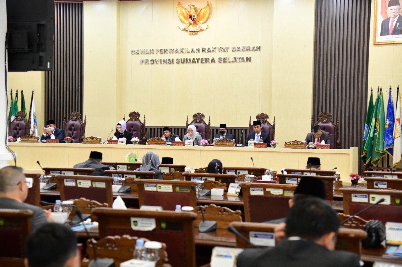 SUMSELDAILY.CO.ID, PALEMBANG – Pimpinan dan Anggota DPRD Prov. Sumsel cermati Penjelasan Gubernur terhadap Raperda Perubahan APBD Tahun Anggaran 2022 pada Rapat Paripurna ke 55 yang dipimpin oleh Ketua DPRD Prov. Sumsel Hj. RA, Anita Noeringhati, SH, MH, didampingi oleh Para Wakil Ketua DPRD Prov. Sumsel; H.M. Giri Ramanda N Kiemas, SE, MM, dan Kartika Sandra Desi, SH serta H. Muchendi M, SE.