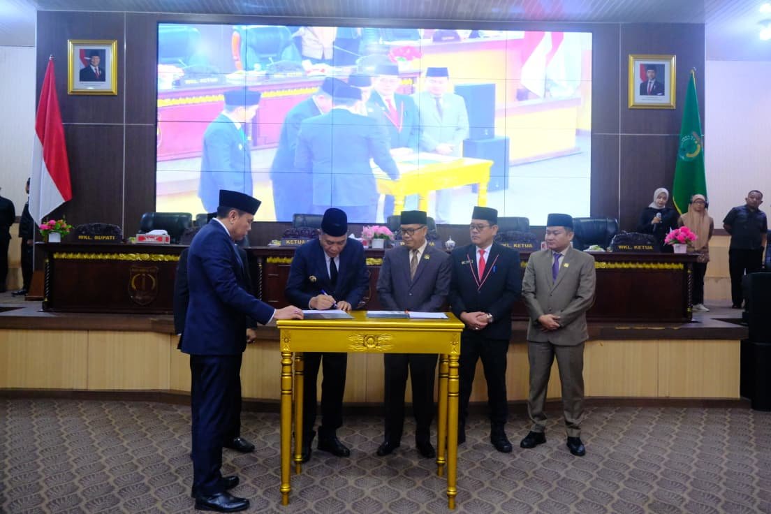 Kesepakatan bersama tersebut dituangkan dalam Rapat Paripurna Masa Persidangan I Rapat ke-23 DPRD Muba, yang digelar di Ruang Rapat Paripurna DPRD Muba, Kamis (13/11/2025).