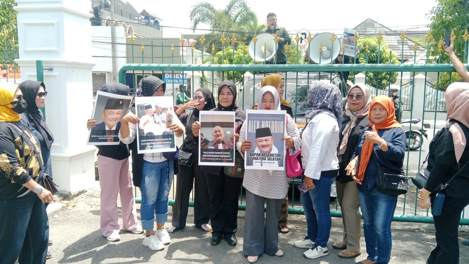 Dengan membawa spanduk bertuliskan dukungan moral seperti “Kami Cinta Pak Alex” dan “Bebaskan Tokoh Pembangunan Sumsel”, massa menyuarakan empati terhadap mantan orang nomor satu di Bumi Sriwijaya itu.