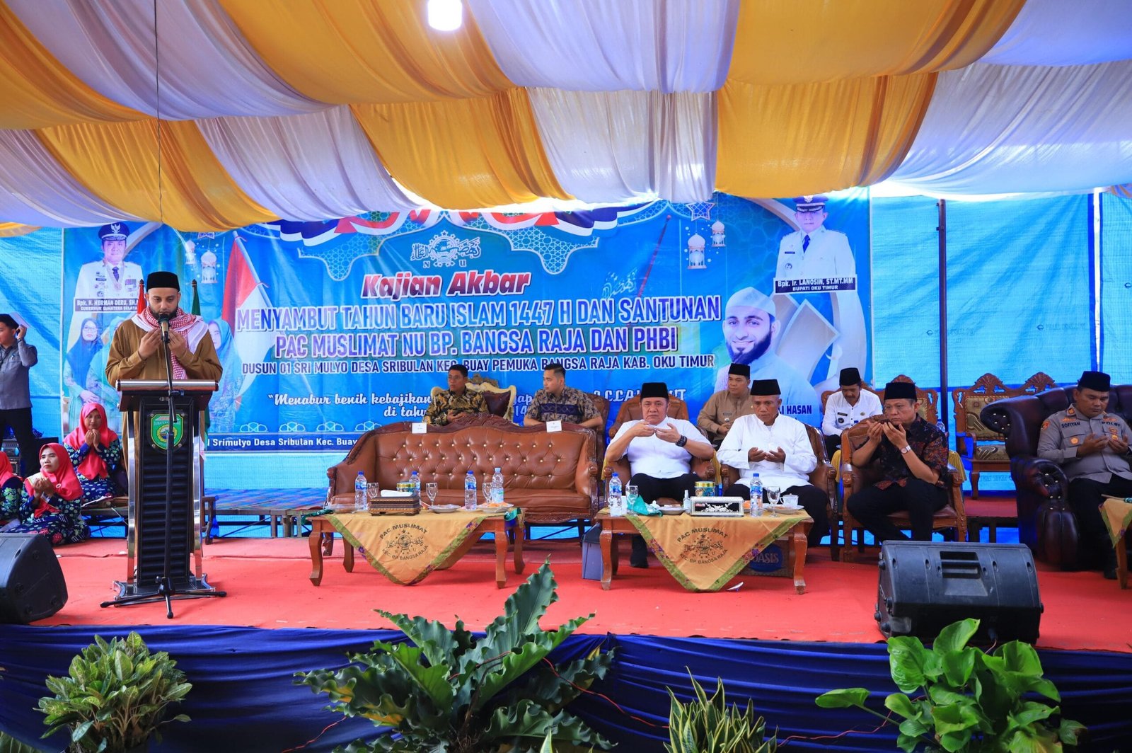 SUMSELDAILY.CO.ID, OKU TIMUR – Dalam suasana penuh kekhusyukan menyambut Tahun Baru Islam 1447 Hijriah, Gubernur Sumatera Selatan (Sumsel) H. Herman Deru menyampaikan kisah inspiratif yang menyentuh hati ribuan jamaah yang hadir dalam Pengajian Akbar di halaman Masjid Nurul Hidayah, Dusun 1 Srimulyo, Desa Sribulan, Kecamatan BP. Bangsa Raja, Kabupaten OKU Timur, Minggu (13/7/2025).