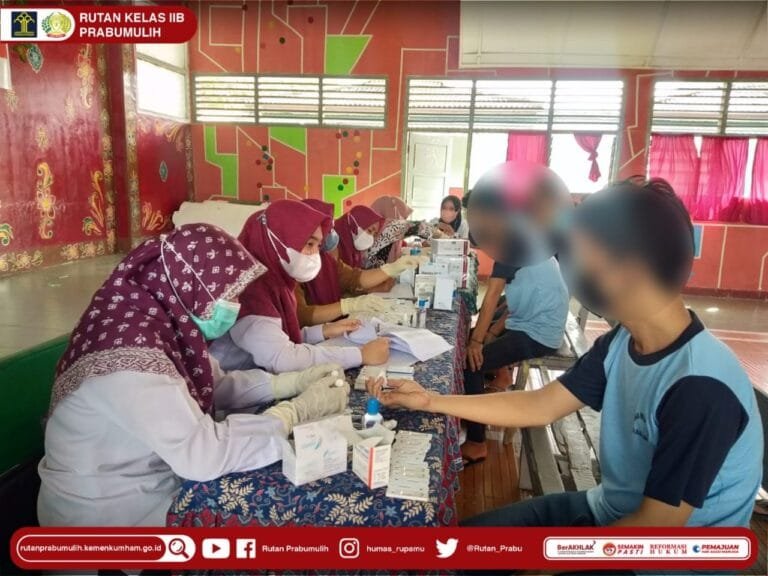 SUMSELDAILY.CO.ID, PRABUMULIH – Dalam rangka memperingati Hari Hepatitis Sedunia, Rumah Tahanan Negara (Rutan) Prabumulih Kemenkumham Sumsel bekerja sama dengan Puskesmas Sukajadi Kota Prabumulih melaksanakan kegiatan Skrining Hepatitis B dan Hepatitis C terhadap Warga Binaan Pemasyarakatan (WBP) nya, Rabu (27/7/2022).