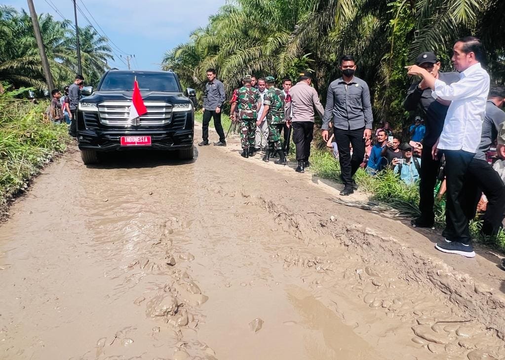 SUMSELDAILY.CO.ID, JAKARTA– Presiden Joko Widodo meninjau kondisi infrastruktur ruas jalan Gunting Saga di Kabupaten Labuhanbatu Utara dalam kunjungan kerjanya ke Provinsi Sumatra Utara pada Rabu, 17 Mei 2023. Presiden menyebut, sedikitnya 260 kilometer jalan nasional di Provinsi Sumatra Utara berada dalam kondisi rusak.