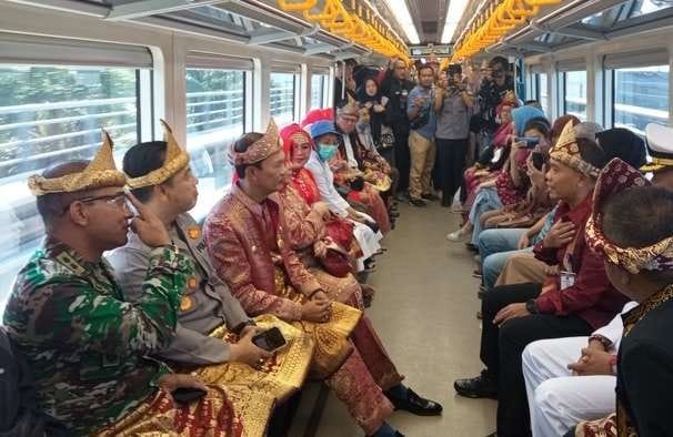 Harnojoyo dan Fitri Naik LRT Hadiri Rapat Paripurna