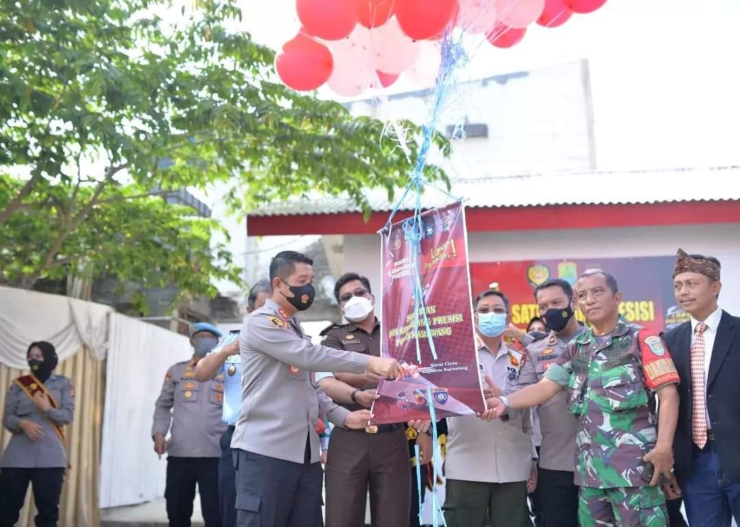 SUMSELDAILY.CO.ID, KARAWANG – Kapolres Karawang AKBP Aldi Subartono menghadiri langsung peresmian Pos Satkamling Presisi yang digelar oleh Polres Karawang, berlokasi di Perum Kalang Surya, Desa Kalang Surya, Kecamatan Rengasdengklok, Kabupaten Karawang, Kamis (30/6/22).Kegiatan tersebut dalam rangka menyambut Hari Ulang Tahun Bhayangkara ke-76 tahun.