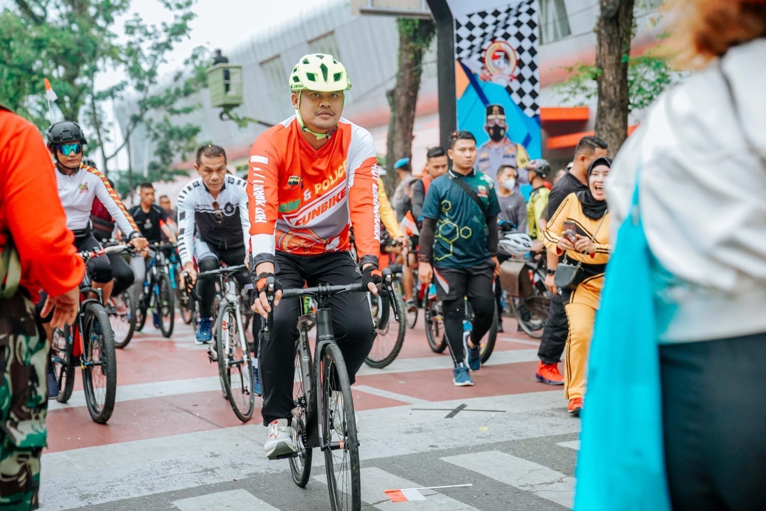 Fun bike ini digelar serentak di seluruh Indonesia yang dibuka langsung Kapolri Jenderal Pol Drs Listyo Sigit Prabowo, MSi secara virtual melalui via zoom meeting.