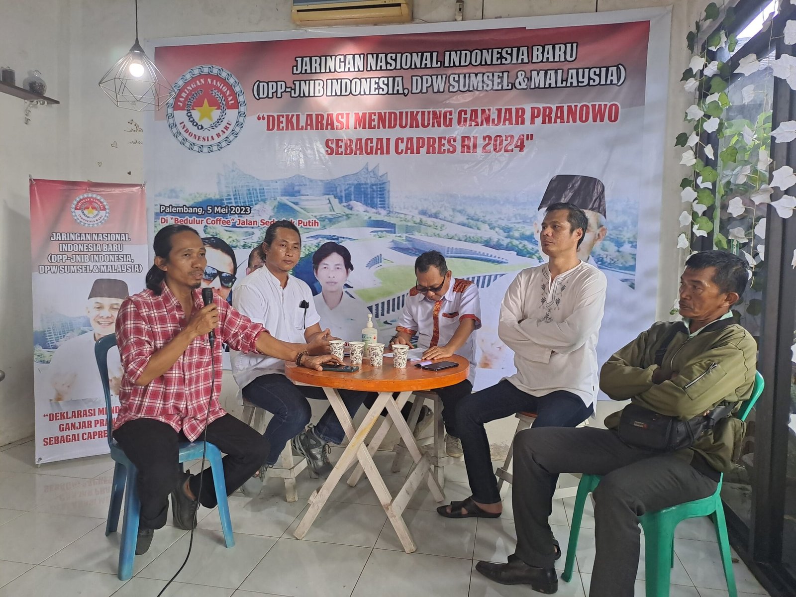 SUMSEL DAILY, PALEMBANG – Jaringan Nasional Indonesia Baru (JNIB) resmi melakuman deklarasi mendukung Ganjar Pranowo sebagai calon Presiden (Capres) RI tahun 2024 mendatang, Jumat (05/05/2023)
