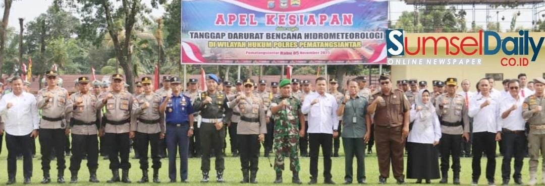 SUMSELDAILY.CO.ID, PEMATANG SIANTAR – Kapolres Pematang Siantar AKBP Sah Udur T.M. Sitinjak SH. SIK. MH pimpin pelaksanaan Apel gabungan dalam rangka Kesiapan Tanggap Bencana Hidro Meteorologi di Lapangan Kompi 2 Batalyon B Sat Brimob Polda Sumut, Jalan Ahmad Yani Kelurahan Asuhan Kecamatan Sianțar Timur Kota Pematang Siantar pada Kamis (6/11/2025).