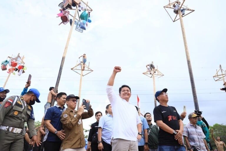 “Ini salah satu bentuk kita menghargai pejuang. Bahwa kita mengisi kemerdekaan ini bukan hanya dengan bekerja tapi juga kegembiraan yang diupayakan karena hal itu tidak bisa datang dengan sendirinya. Seperti panjat pinang inikan harus diupayakan karena butuh sponsor karena hadiahnya banyak. Makanya butuh kolaborasi yang luar biasa,” jelasnya.