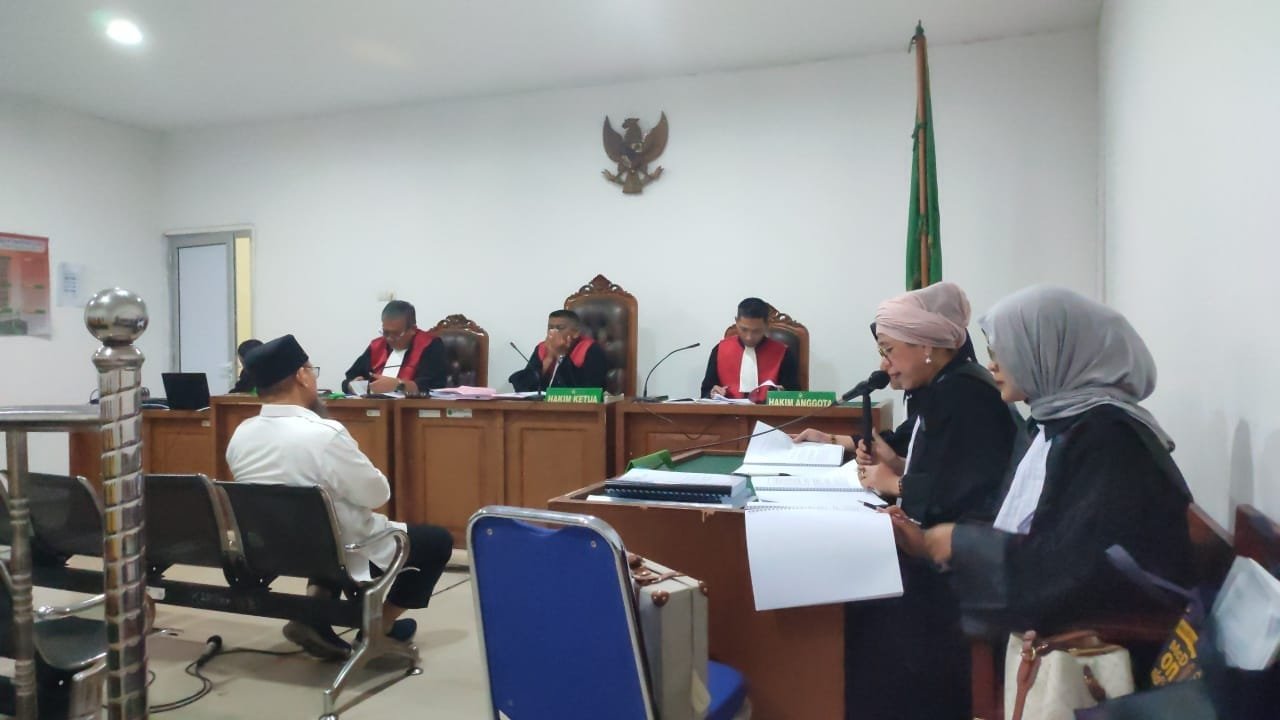 Terdakwa Yudi Herzandi sampaikan eksepsi melalui tim penasehat hukumnya yaitu Hj.Nurmala SH MH, didampingi Fitrisia Madinah SH dan Anita Dian Yustisia SH secara bergantian sampaikan nota keberatan terhadap JPU Kejari Muba.
