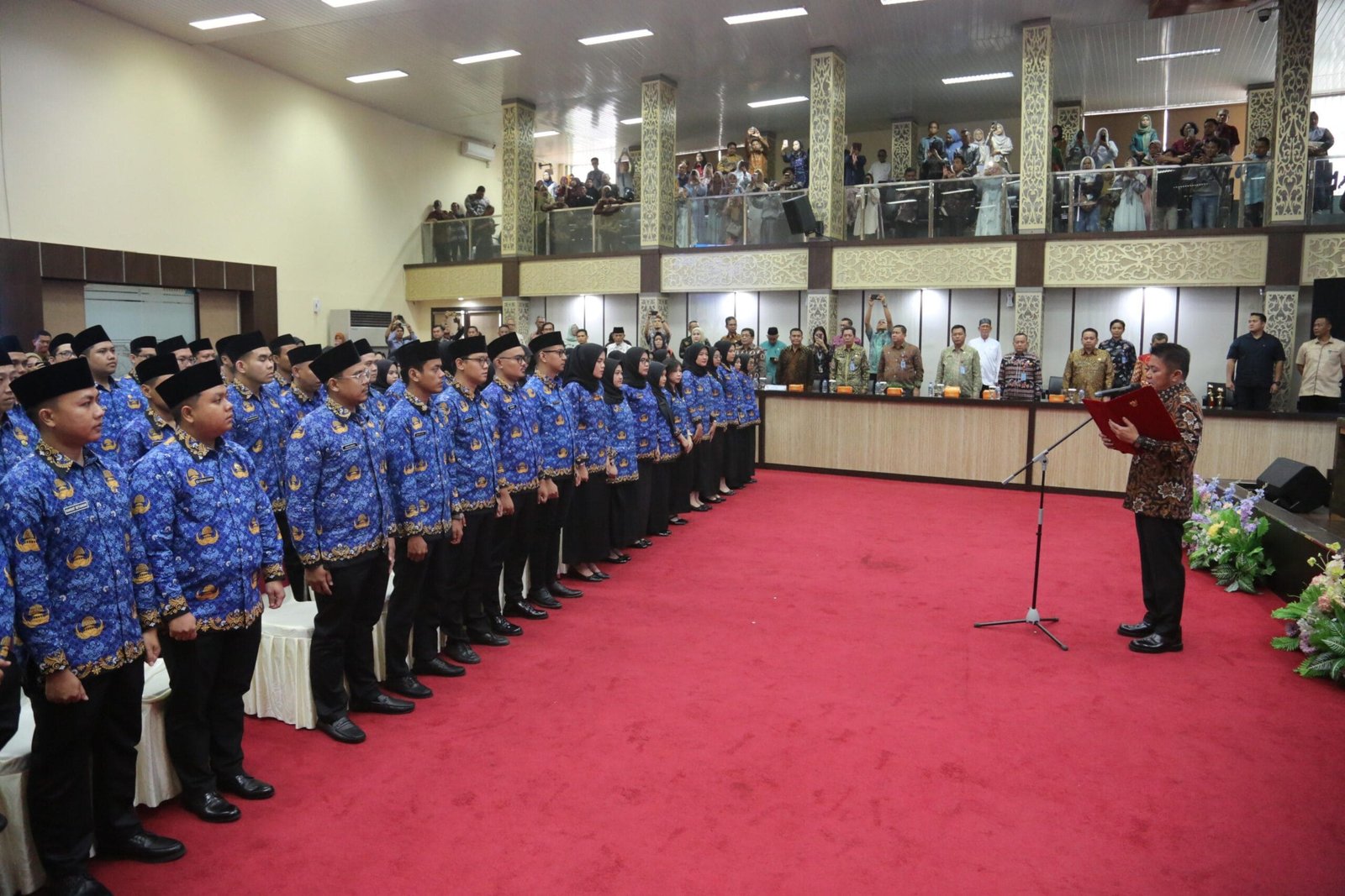 SUMSELDAILY.CO.ID, PALEMBANG – Gubernur Sumatera Selatan (Sumsel) H. Herman Deru secara resmi melakukan Peresmian Calon Pegawai Negeri Sipil (CPNS) di lingkungan Pemprov Sumsel formasi tahun anggaran 2024 sebanyak 101 CPNS di Auditorium Bina Praja Pemprov Sumsel, Jumat (9/5/2025) siang.