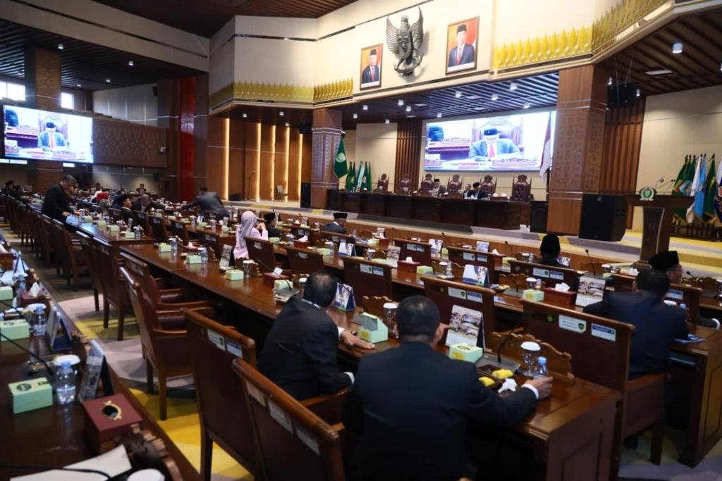 SUMSEL DAILY, PALEMBANG – Wakil Gubernur (Wagub) Sumsel H. Mawardi Yahya menghadiri Rapat Paripurna LXVII (69) DPRD Provinsi Sumsel dengan agenda Jawaban Gubernur Terhadap Pandangan Umum Fraksi-Fraksi DPRD Provinsi Sumsel terhadap Raperda Perubahan APBD Provinsi Sumsel Tahun Anggaran 2024, di Ruang Rapat Paripurna DPRD, Senin (21/8) siang.
