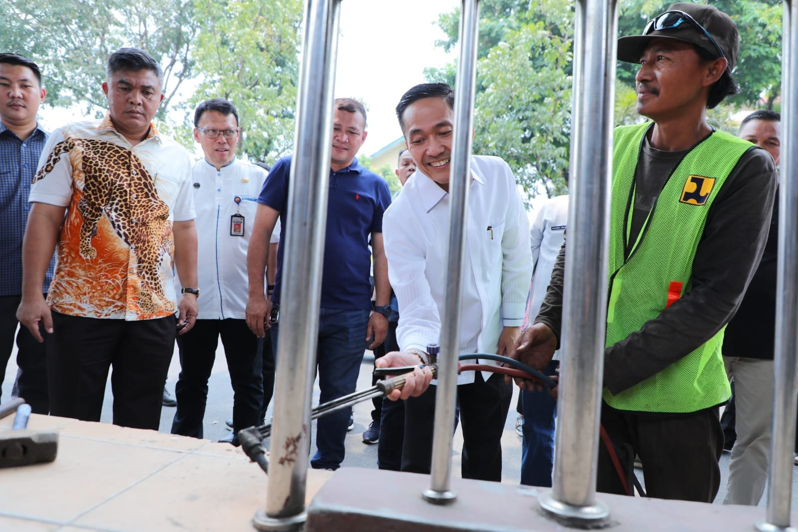 Saat melakukan penghapusan halte, PJ Wali Kota Palembang ini terlihat memegang palu dan juga mesin las.