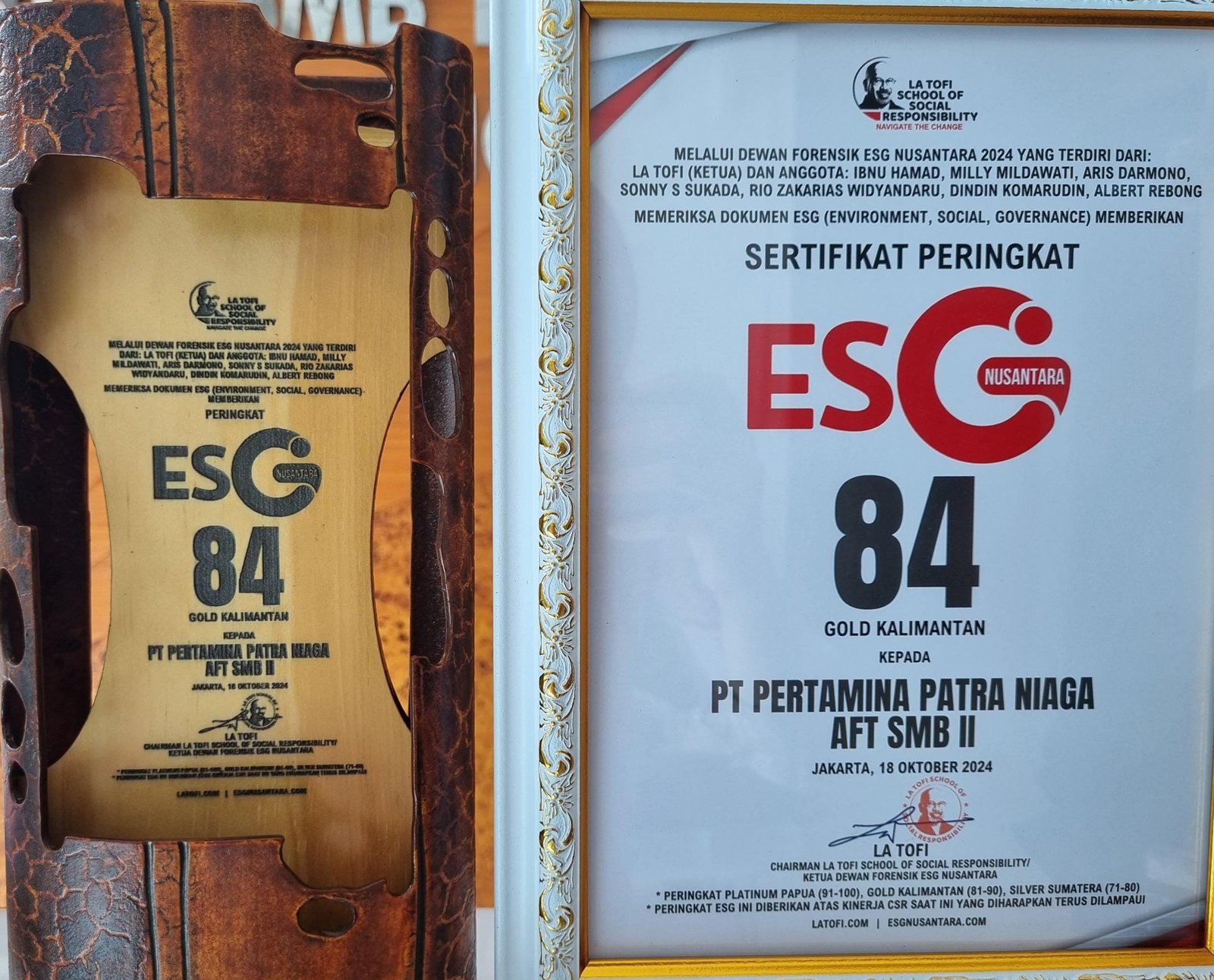 Pada kesempatan ini Pertamina berhasil meraih penghargaan dengan peringkat Gold Kalimantan pada skor 84 atas program Tanggung Jawab Sosial dan Lingkungan (TJSL) yang telah dijalankan, khususnya pada kegiatan Simpatik Japing Blok oleh Kelompok U-GreenPlast binaan AFT SMB II.