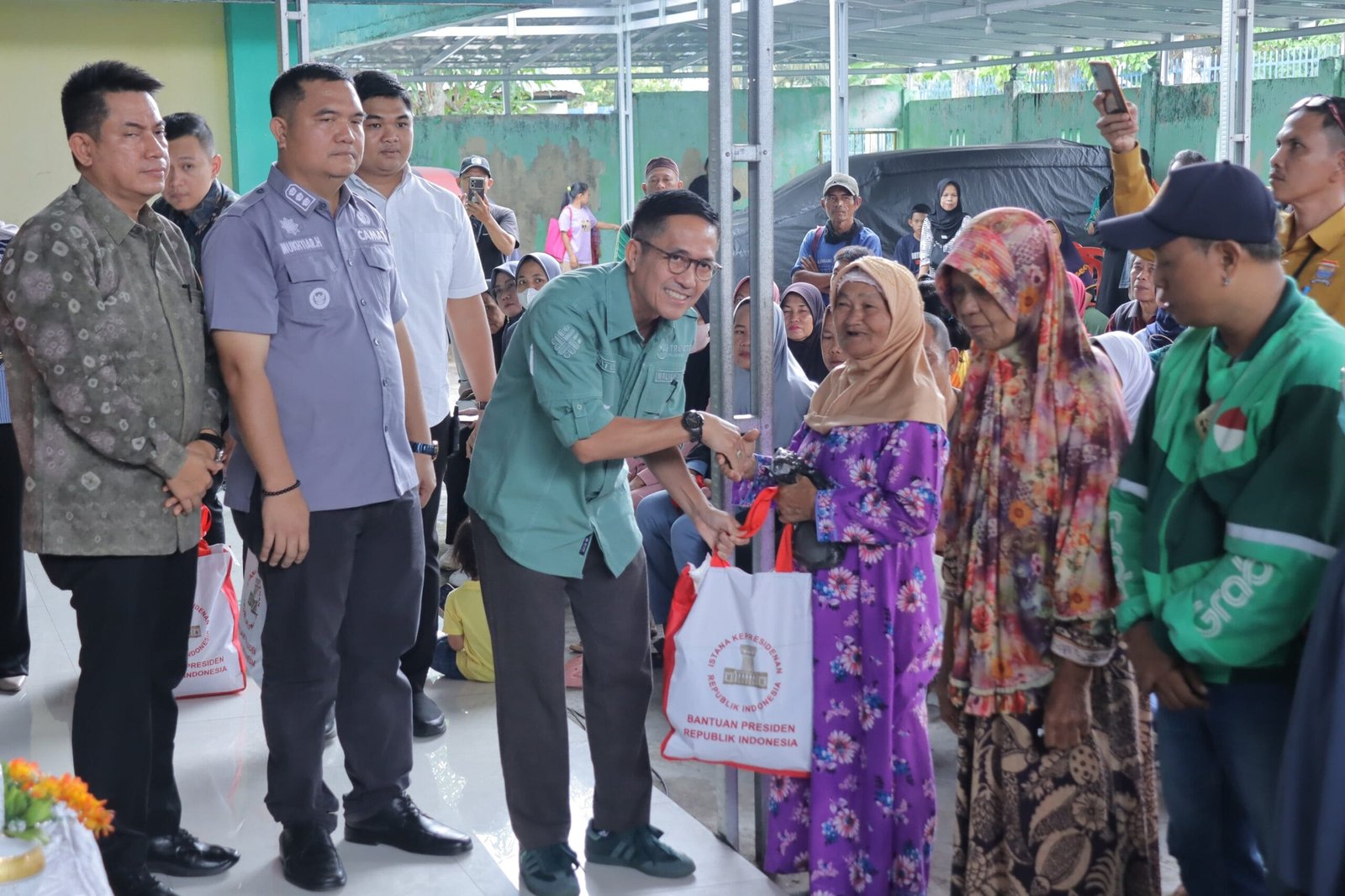 Sebanyak 353 paket Sembako disalurkan pada acara yang berlangsung di Halaman Masjid Al-Kautsar, Kecamatan Seberang Ulu (SU) I tersebut.