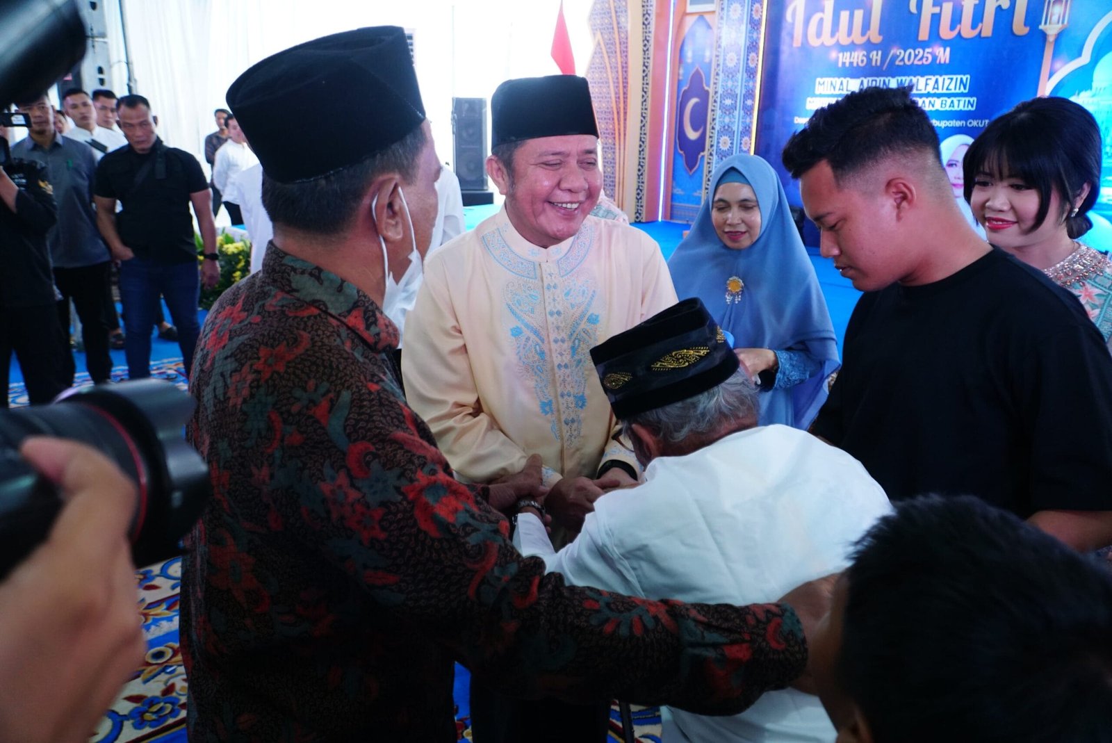 SUMSELDAILY.CO.ID, OKU TIMUR – Gubernur Sumatera Selatan (Sumsel) H Herman Deru di dampingi Ketua Tim (TP) Pemberdayaan Kesejahteraan Keluarga (PKK) Provinsi Hj Febrita Lustia HD sekeluarga besar melakukan silaturahmi dan halal bihalal dalam rangka hari Raya Idul Fitri 1446 Hijriah di tanah kelahirannya Desa Sidomulyo Kecamatan Belitang Kabupaten Ogan Komering Ulu Timur (OKUT), Kamis (3/4/2025).