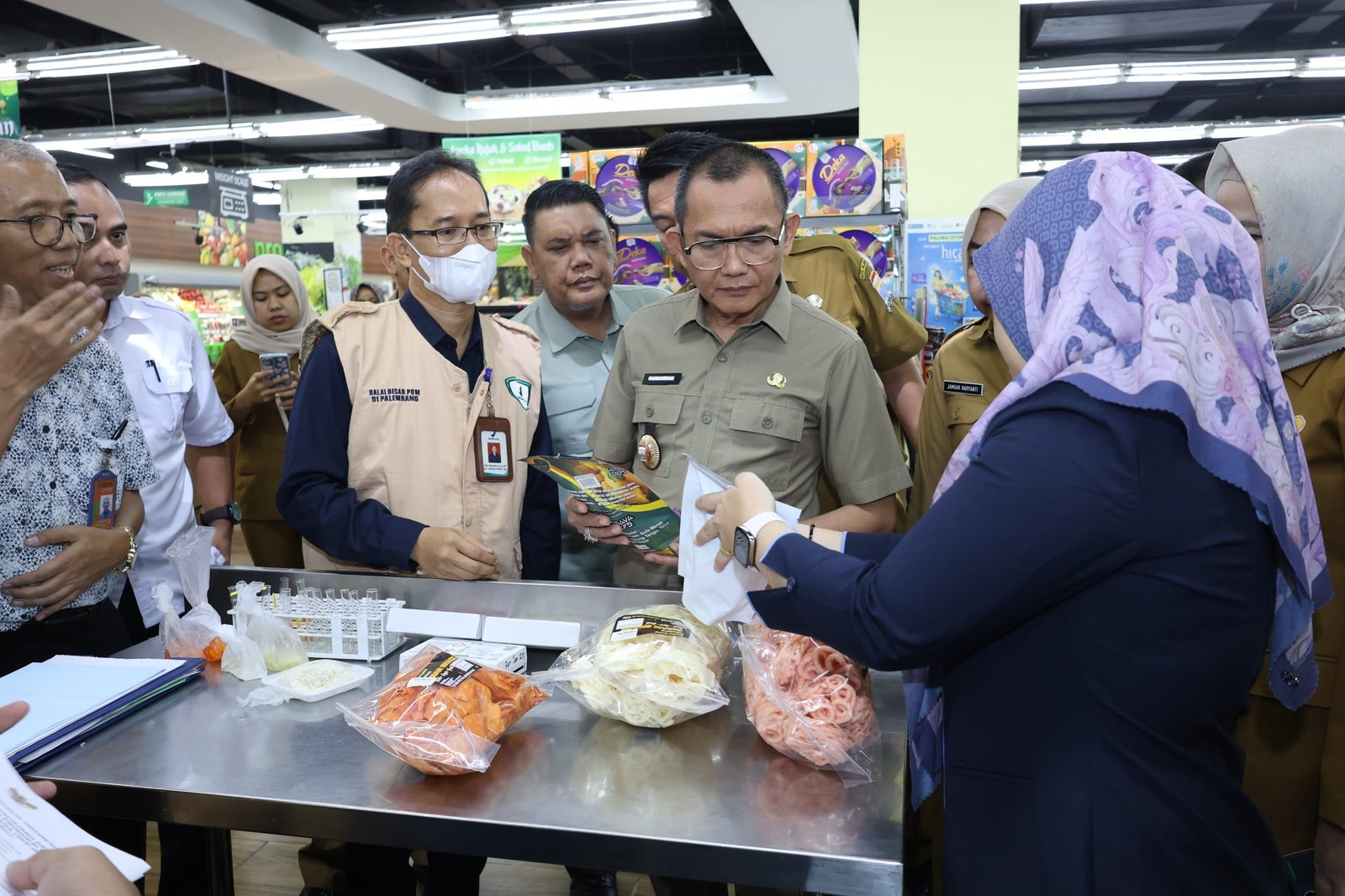 SUMSELDAILY.CO.ID, PALEMBANG – Guna memantau ketersediaan stok pangan sekaligus keamanan pangan di bulan suci Ramadhan serta Jelang hari raya Idul Fitri 1445 Hijriah, Penjabat (Pj) Sekretaris Daerah (Sekda) kota Palembang, Ir. H. Gunawan, M.TP bersama Balai Besar Pengawas Obat dan Makanan (BBPOM) gelar sidak di sejumlah supermarket di kota Palembang, Senin 1 April 2024.