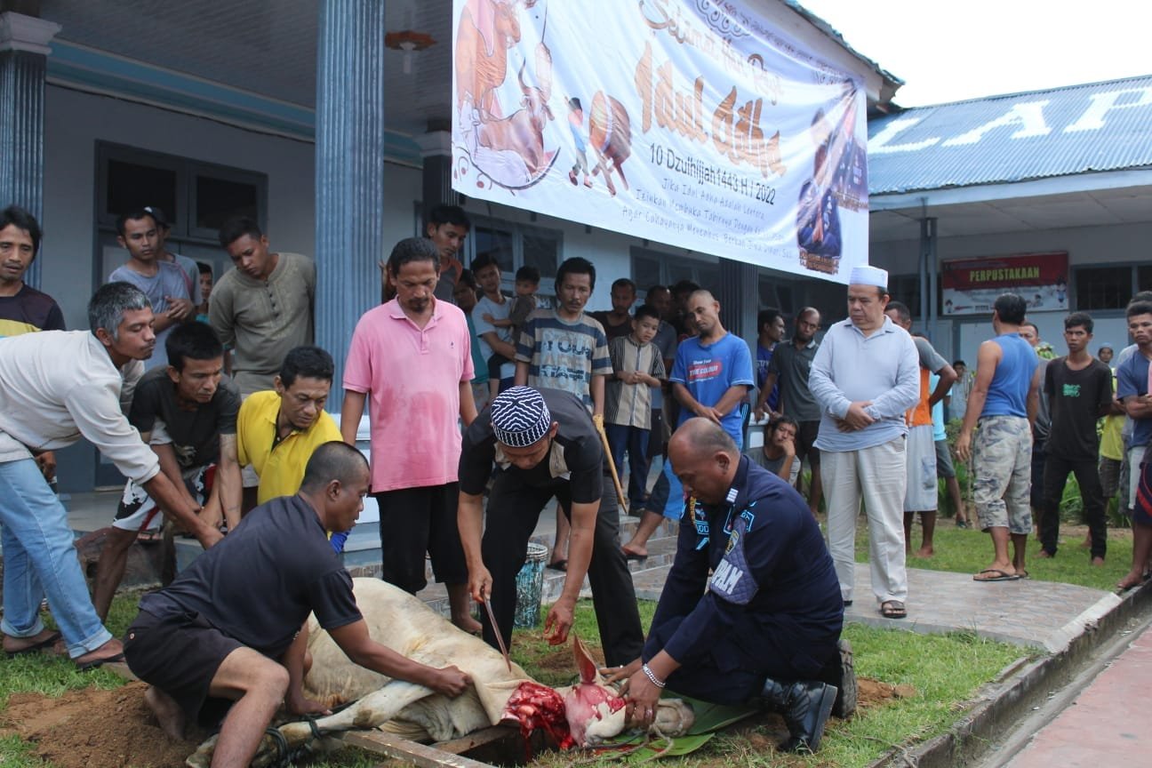 Di Hari Raya Idul Adha ini Lapas Kelas IIB Padangsidimpuan, menyembelih tiga ekor Hewan Kurban yang terdiri dari satu ekor sapi dan dua ekor kambing.