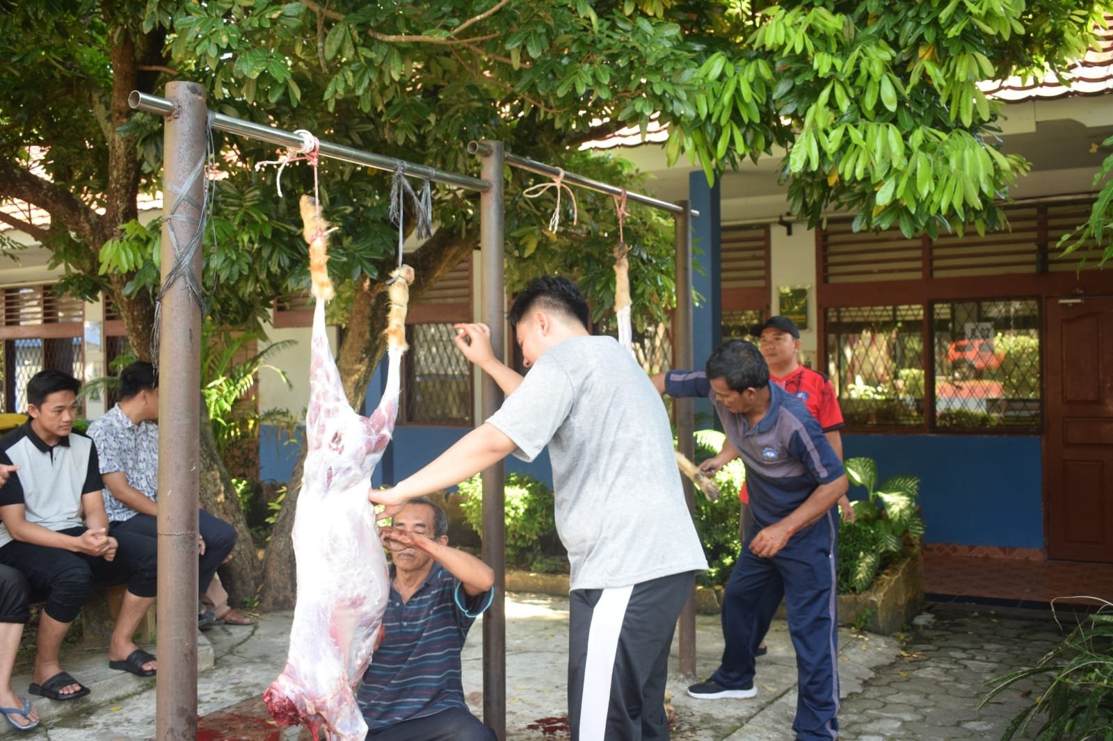 Kegiatan berlangsung di halaman sekolah dan dimulai sejak pagi hari, dihadiri oleh kepala sekolah, dewan guru, staf tata usaha, siswa-siswi, serta panitia kurban yang telah dibentuk jauh-jauh hari. Tahun ini, panitia kurban berhasil menghimpun total 8 ekor hewan kurban, terdiri dari 4 ekor sapi dan 4 ekor kambing.