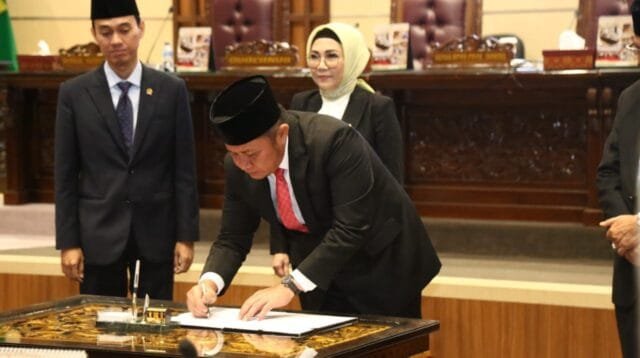Ketua DPRD Sumsel dan Gubernur Herman Deru Tandatangani Keputusan Bersama Raperda DPRD Ta 2024