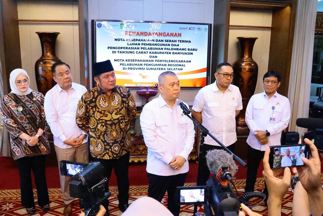 Langkah bersejarah ini ditandai dengan penandatanganan Nota Kesepahaman (MoU) dan serah terima lahan pembangunan pelabuhan antara Pemerintah Provinsi Sumsel dan Kementerian Perhubungan Republik Indonesia (Kemenhub RI) di Griya Agung Palembang, Jumat (31/10/2025).
