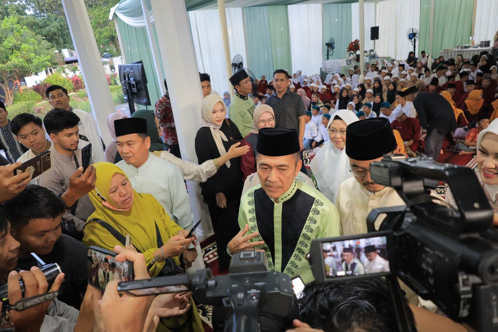 Sebanyak 479 anak yatim menerima santunan dalam kegiatan tersebut, yang juga dihadiri jajaran perangkat daerah serta tokoh agama. Selain berbuka puasa, rangkaian acara dilanjutkan dengan salat Magrib, Isya, dan Tarawih berjamaah.