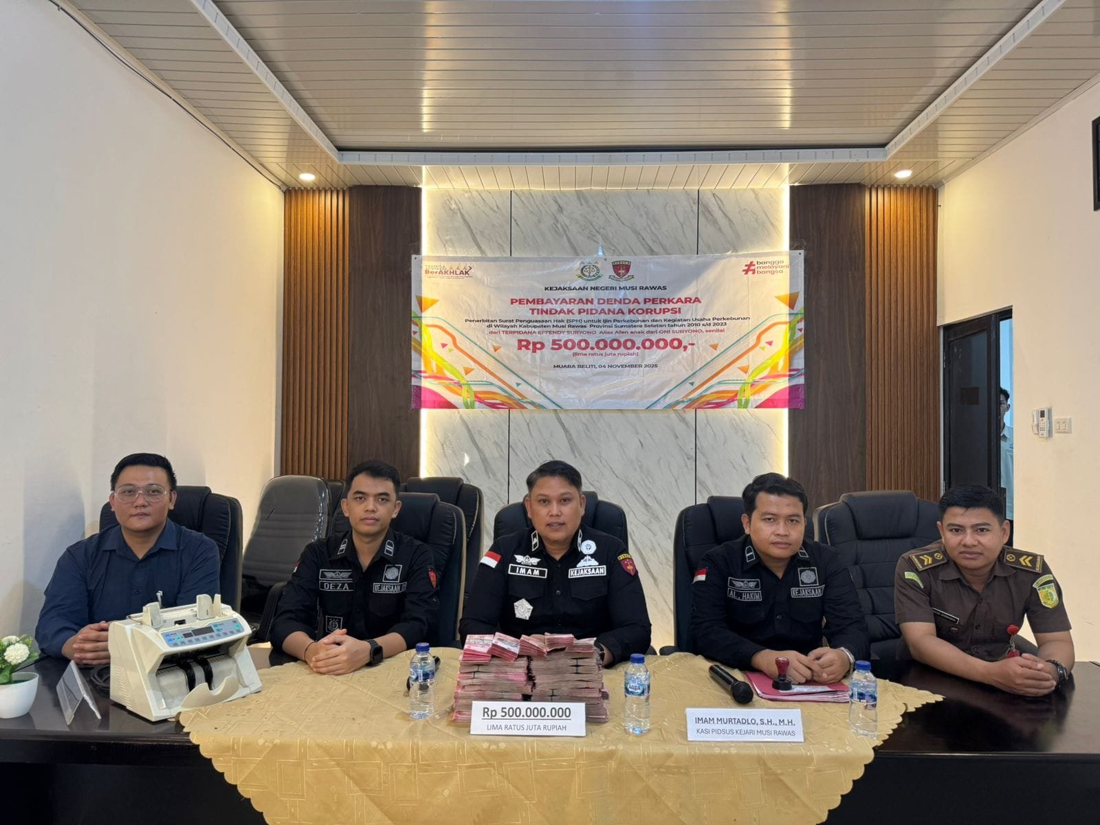 “Hari ini terpidana Effendy Suryono alias Afen melakukan pembayaran pidana denda secara tunai sebesar Rp500 juta. Uang tersebut akan segera kami setorkan ke Bank Syariah Indonesia dalam waktu 1×24 jam,” ujar Imam, Selasa (4/11/2025).