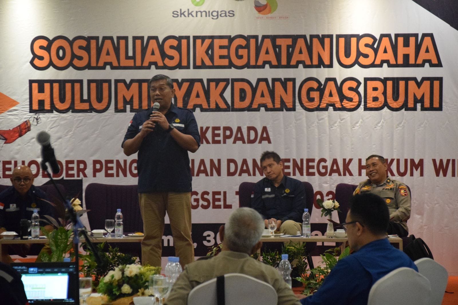 Mewakili Manajemen SKK Migas hadir langsung melakukan sosialisasi Penasihat Ahli Kepala SKK Migas Bidang Keamanan, Brigjen Pol. Drs. Bambang Priambadha S.H., M.Hum., dan Penasihat Ahli Kepala SKK Migas Bidang Teritorial, Mayjen TNI (Purn) Poernawan Widi Andaru, Kepala Perwakilan SKK Migas Sumbagsel, Anggono Mahendrawan serta Spesialis Madya Dukungan Bisnis SKK Migas, Haryanto Syafri.