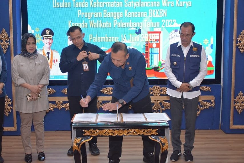“Hari ini kita kehadiran tim verifikasi penghargaan Satyalancana Wira Karya, yang dikhususkan untuk pembangunan, kependudukan, dan keluarga berencana. Upaya-upaya yang kita lakukan di Kota Palembang, mengurangi angka stunting, dan cukup banyak dilakukan inovasi-inovasi. Hari ini bersama tim kami akan turun ke lapangan bersama tim, utamanya ke Kampung Layang-layang, dan salah satu Rumah Sakit yang kerja sama dengan Pemerintah Kota, terkait mendeteksi dini stunting sejak dalam kandungan,” terang Wali Kota Palembang Harnojoyo.